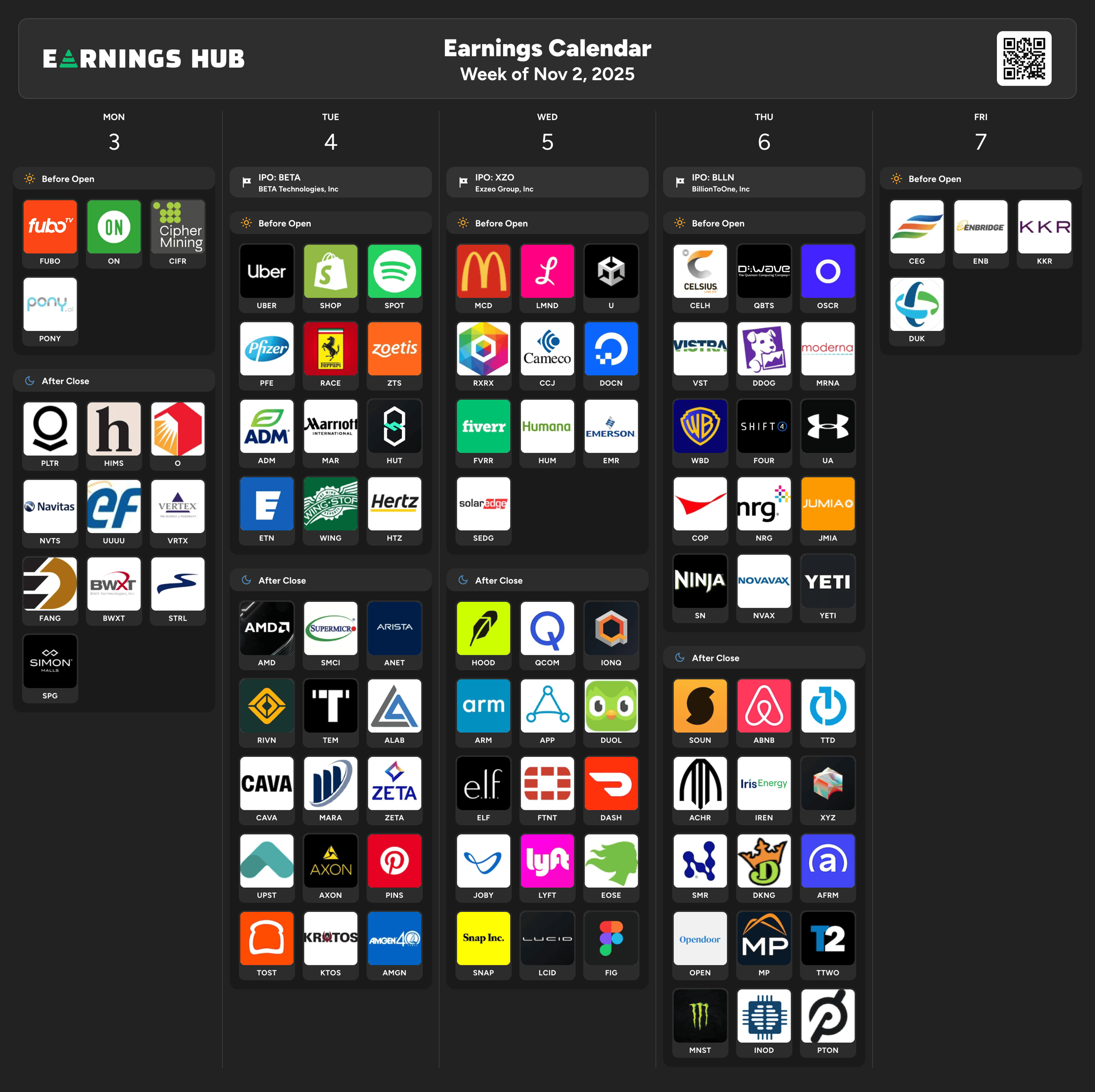 Companies Reporting Earnings, Week of November 2nd, 2025: