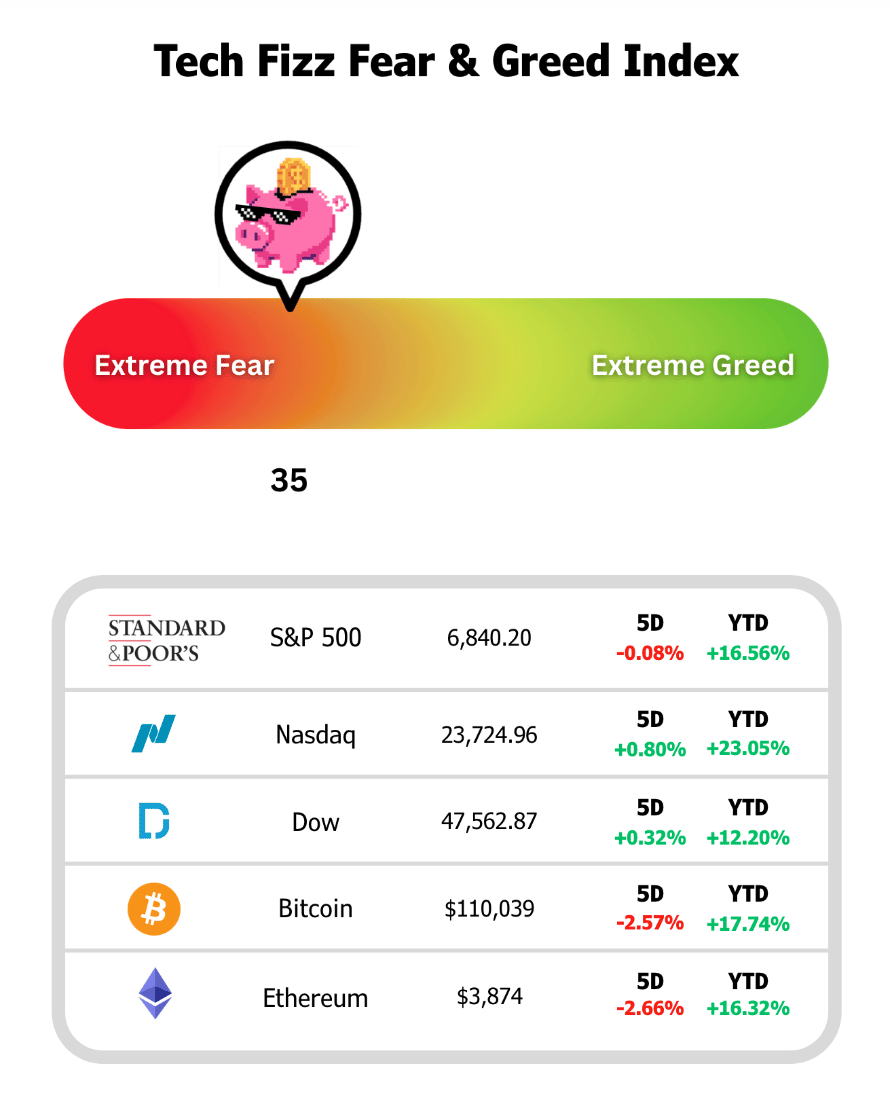 November 9, 2025 | Read Online ๐ Hey there, Tech Fizz here. A few weeks ago we asked our readers what their favorite GenAI tool was. Here are the results: What we've got in this edition: ๐จ Market News Highlights. ๐ฌ AI Prompts. New prompt engineering framework unlocked. ๐ ETF Flow Analysis and ARKK Fund Trades. Which tech stocks are being bought and sold? *Stock market data as of market close on Nov 7, 2025. Crypto prices as of 1:20 PM MST on Nov 8, 2025. MARKET RADAR ๐ค Making it rain. Big...